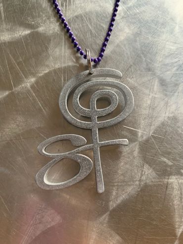 Aluminum 2.5" pendant, lightweight, with beautifully chosen upcycled necklace, chosen with love by Moana. Each necklace has its own personality, and will not necessarily reflect the chain in the photo.